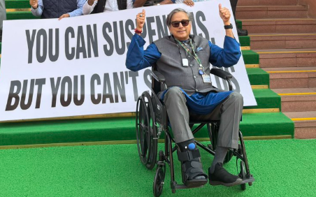 शशि थरूर ने शेर के जरिए सरकार पर तंज कसते हुए कहा, “हमको मालूम है जन्नत की हकीकत, लेकिन दिल बहलाने को ग़ालिब ये खयाल अच्छा है।”