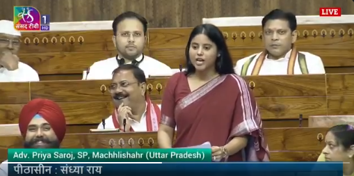 संसद के मानसून सत्र के सातवें दिन समाजवादी पार्टी की युवा सांसद प्रिया सरोज ने लोकसभा में जौनपुर की जनता की समस्याएं प्रमुखता से उठाईं। उन्होंने रेल मंत्री का ध्यान जिले के बस सिटी रेलवे स्टेशन की बदहाल स्थिति की ओर खींचते हुए वहां बुनियादी सुविधाओं की कमी पर चिंता जताई।