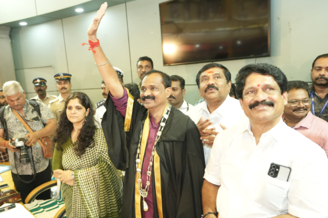महापौर पद के लिए हुए चुनाव में बीजेपी उम्मीदवार वीवी राजेश को कुल 51 वोट मिले, जो बहुमत के आंकड़े से एक अधिक थे। सीपीआईएम के उम्मीदवार आर.पी. शिवाजी को 29 वोट मिले, जबकि कांग्रेस के नेतृत्व वाले यूडीएफ के उम्मीदवार के.एस. सबरीनाथन को 19 वोट प्राप्त हुए। एक पार्षद मतदान में शामिल नहीं हुआ। एक निर्दलीय पार्षद के समर्थन से बीजेपी को निर्णायक बढ़त मिली और जीत सुनिश्चित हो सकी।